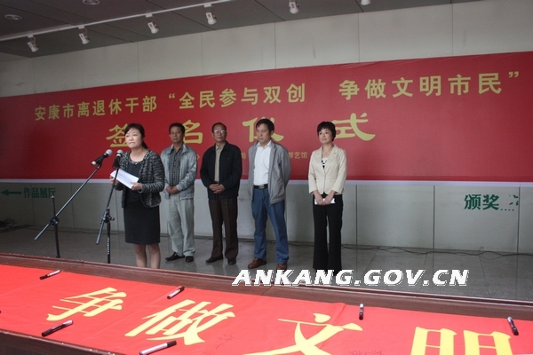 10月11日下午,由市委老干局、市文明办主办的全市离退休干部“全民参与双创,争做文明市民”活动签名仪式在市群艺馆举行,来自市直各单位、市级各老年社团的近300名离退休干部庄重的在大红条幅上签名,积极参与双创,争做文明市民。