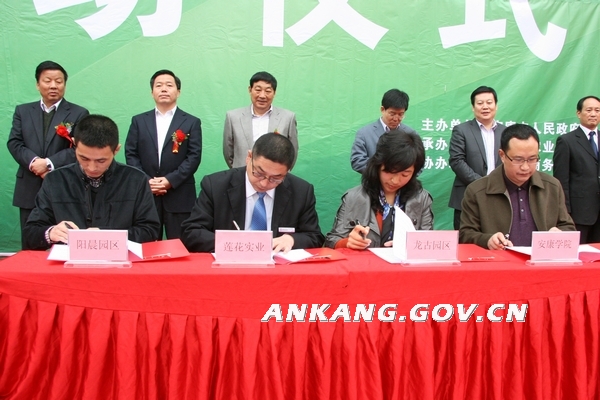 出席启动仪式的领导还为杨晨现代农业园区、汉阴蒲溪秦园现代农业园区直销点授牌,部分超市、学院、餐饮企业与农业园区签订了“农超对接、农校对接、农企对接协议。