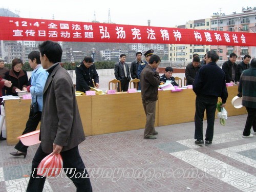 12月2日,由旬阳县委依法治县办、县司法局组织,县政府办、人劳局、教育局及公检法等19个部门参与的“12.4”法制宣传活动在旬阳县城祝尔慷广场展开,县委、县人大、县政府、县政协的领导亲临现场指导。宣传活动中,各部门共发放行业专业法律、法规等宣传资料19000余份,设计50多部法律法规,现场法律咨询200人次。在宣传活动中还展示了“四五”普法依法治理工作成果展板48块。当日,县委依法治县办、县司法局还组织了全县乡镇干部职工年度学法用法考试,28个乡镇3000余干部参加了考试。