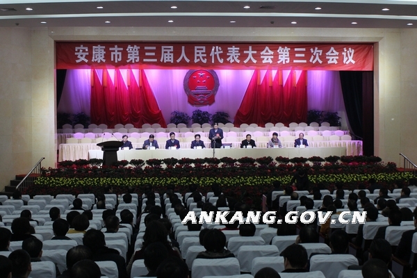 刘建明宣布:安康市第三届人民代表大会第三次会议筹备工作已经全部就绪。应到代表 356名,出席预备会议的代表336名,符合法定人数。