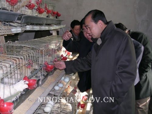 视察绿壳蛋鸡养殖基地