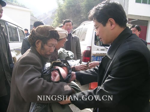 2006年元月7日,宁陕县县委书记陈明、县委副书记周康成、政法委书记刘彬智、副县长刘云在县委办、计划、扶贫、水利、民政、广电等部门和宁陕县梅子乡党委、政府主要负责人的陪同下,深入到梅子乡瓦房村、女王村、南昌村,走访慰问特困群众,把慰问金、越冬棉衣和年货送到了特困群众手里,把党和政府的温暖及人民的关怀带到了他们心里,使他们过一个祥和愉快的春节。