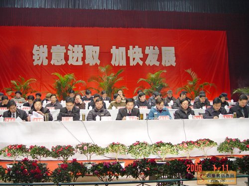 元月11日,石泉县经济工作会议召开。会议的主要任务是回顾总结全县2005年经济工作的主要成绩,认真分析当前及今后一个时期所面临的形势,全面安排部署2006年以经济建设为主的各项工作,进一步动员全县上下团结一心,拼搏进取,奋力推动经济社会协调快速发展。中共安康市委常委、市委秘书长、县委书记徐启方出席会议并作重要讲话,石泉县委副书记、县政府县长明平英对2006年经济社会发展各项工作进行了安排部署,县委常务副书记王彪主持会议。全体县级领导出席会议,县委各部门、县级国家机关各部门、各人民团体、各直属机构、办事机构副科级以上领导、主任科员、副主任科员以及内设股室负责人(不包括基层站、所、队长);驻石各单位主要负责人;各乡镇党委书记、乡镇长、乡镇人大主席团主席;各村(居委会)党支部书记、村(居)委会主任;离休老干部代表;国有、集体企业厂长(经理)及个私协会会长,民营企业厂长(经理)及个体工商户代表1100余人参加了大会。