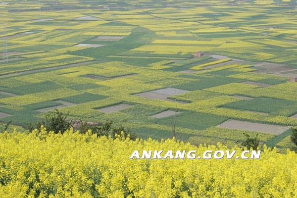 油菜花本身具有接近中性灰的亮度,较适合数码相机按18%中性灰密度来展现,一般不需做曝光补偿,如果想到比较明快的效果,也可根据实际情况做0.3档的曝光补偿。拍摄时的曝光要结合现场与油菜花相关的山水建筑以及树林等自然人文风光一起考虑,根据综合需要或表现主体需要做曝光补偿。如画面中有较多远山等高亮度对象时,需增加曝光量,有深色调树林等要减少曝光量。