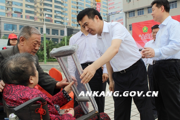 5月16日上午,安康市第二十三个“全国助残日”活动暨贫困残疾人辅具发放仪式在中心广场举行。市委书记郭青,副市长鲁琦出席发放仪式并为残疾人发放辅助器具。