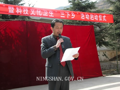 宁陕县委常委、县委宣传部长齐志祥主持仪式,副县长张海庆在启动仪式上作了重要讲话。他说,在科技飞速发展的今天,农村发展仅靠传统的春种秋收已经不能适应农村经济发展的需要,更解决不了农民致富的根本问题。为进一步增强提高农民的科技意识、丰富农民的文化生活,引导农民养成文明健康的生活方式,在更宽领域,更深层次,深入宣传普及科普知识,进一步动员全社会关心农村,支持农业,帮助农民,是加快农村经济发展,增加农民收入,真心实意为农民谋利益的有效途径。
