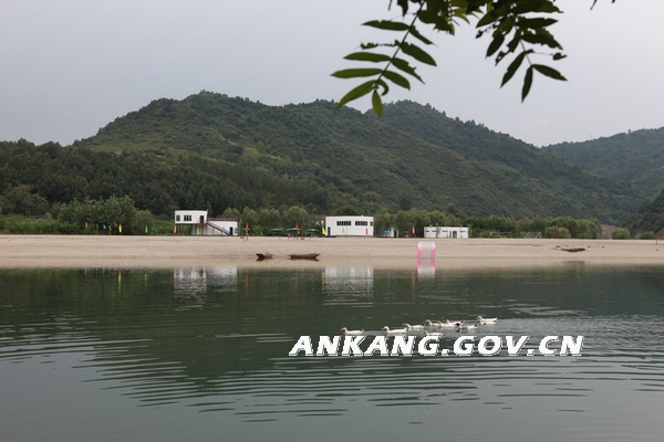 子午银滩景区坐落在汉江最大支流子午河与汶水河交汇处,由汶水河畔六片形态各异的沙滩串联而成,汶水河是汉江主要支流之一,河水清澈见底,两岸植被茂盛,景色秀美。子午银滩是河水常年冲刷砂石回流堆积而成,沙滩连接成片,望不到边,沙子洁净均匀,细腻柔软,是陕南难得的一处天然沙滩浴场,东西绵延数公里,号称“千亩沙滩”。