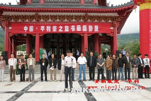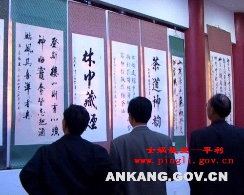 5月21日,平利县“茶之旅”书画摄影展在五峰楼开展。省书法协会秘书长越居阳、市委宣传部副部长马昌琪与平利县领导刘明德、陈晓虎、刘全祥、王向东等为书画摄影展剪彩。