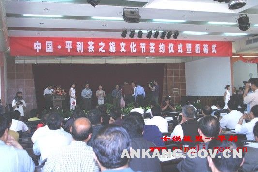 在“茶之旅”文化节项目签约仪式上,平利县示范茶场转让绞股蓝合作开发及全国零售市场总经销、女娲茶饮产品生产及全国零售市场总经销合作投资等14个投资、购销项目成功签约。签约资金达到1.25亿元。平利县委常委、政法委书记汪贤存宣读了茶文化节编委会关于《茶文化节茶事活动表彰的决定》,平利县领导何邦军、吴平、刘明德为获奖单位和个人颁发了奖杯。