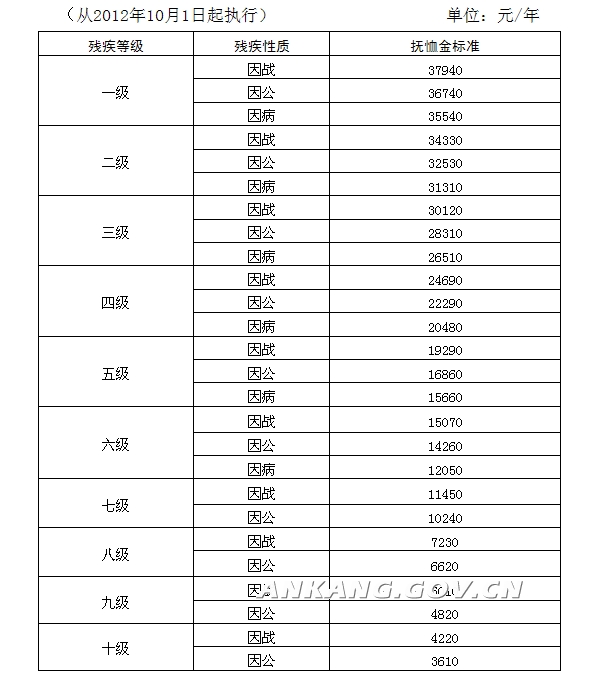附件:1.残疾军人、伤残人民警察、伤残国家机关工作人员、伤残民兵民工残疾抚恤金标准表