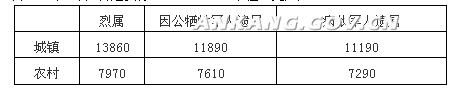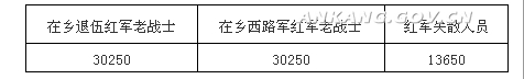 在乡退伍红军老战士、在乡西路军红军老战士、红军失散人员生活补助标准表