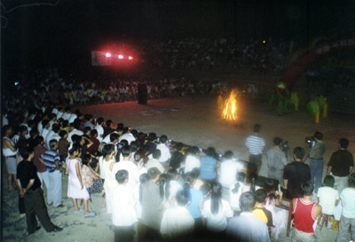 晚会还设置了观众与演员同台共舞、燃放烟花等节目,把晚会一次次推向高潮。