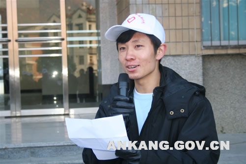 基层法律援助志愿服务活动的志愿者代表、宁陕基层法律援助志愿服务队队长于雷发言