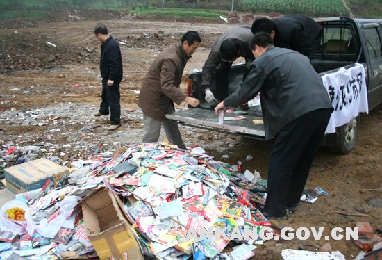 为了充分展示我市“扫黄打非”、保护知识产权行动成果,扩大反非法、反盗版、维护公平正义的宣传效果。12月8日,我市在汉滨区张滩镇郊区隆重举行2006年全市违法音像制品、盗版图书集中销毁活动。市委常委、宣传部长钟顺虎出席活动。