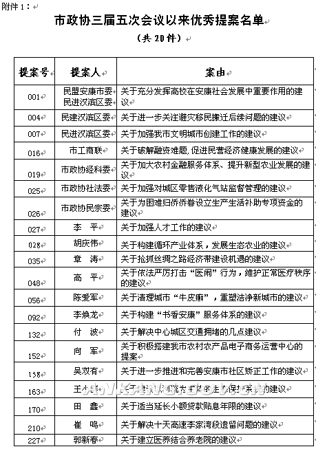 附件:1、市政协三届五次会议以来优秀提案名单;