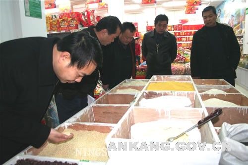 近日,宁陕县副县长张海庆带领县粮食、工商、质监、物价等部门负责人到县城各超市、菜市场、粮食供应点检查节日商品货源组织和销售情况。重点对市场成品粮油销售企业、个体销售点的资质、粮油产品质量、粮食价格执行情况,以及有无产品质量合格证、有无陈化粮流入口粮市场、有无短斤少两情况等,特别加大对陈化粮、劣质粮油的检查。要求粮食、质监、物价等部门加强粮油食品安全监督,坚决打击囤积居奇、哄抬物价、假冒伪劣等违法行为,维护正常的市场流通秩序,确保广大人民群众食品安全。