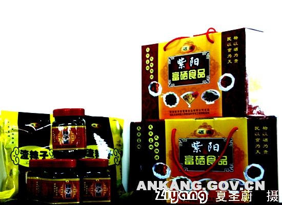 紫阳县是迄今为止发现的全国两大富硒区之一,生物资源丰富,开发富硒食品具有特殊的区位优势、资源优势和市场优势。2006年,紫阳县第十三次党代会上,县委、县政府把富硒食品作为四大工业群体重要建设来抓,县上成立了富硒食品开发领导小组,县政府出台了“十一五”富硒食品开发实施方案,紫阳县科技局成立了产品开发小组,安排专人进行文字、包装设计,并在蒿坪镇、汉王镇、双安乡食品加工技术好的大户开发富硒新产品,经过近40天的努力,开发出皮豇豆、豆腐乳、香豆鼓、渣辣子、辣子酱5种富硒食品,赶在春节前上市。刚刚开发出来的这5种富硒食品经过精细加工、高压真空包装、高温蒸汽消毒等程序,经相关部门检测达到了质量要求。