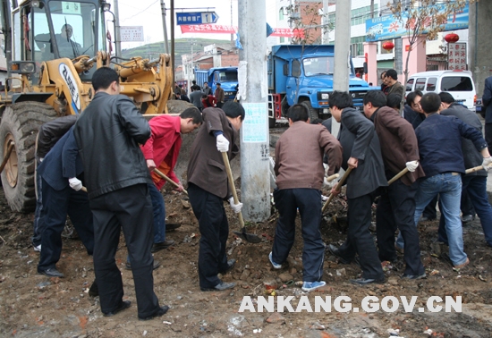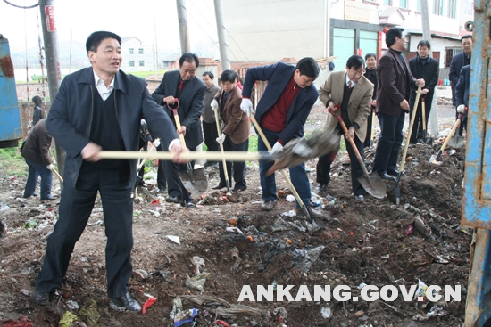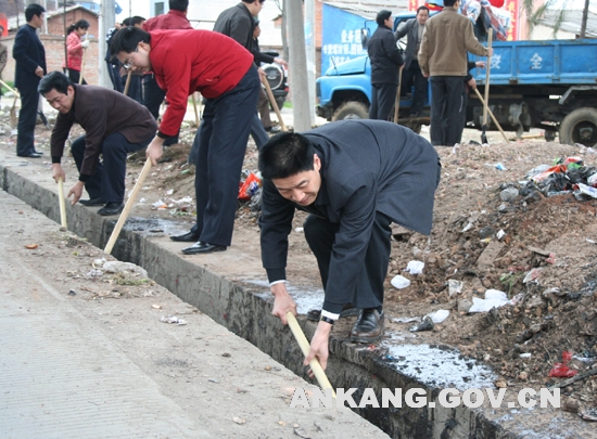 全市爱国卫生环境整治会议召开以后,我市城区迅速掀起了整治脏乱差的热潮。3月5日下午,市长刘建明,市委常委、常务副市长邹明,市委常委、副市长吴德珠,副市长王安利、薛建兴等领导,与市直有关部门干部职工三百多人一起,对汉滨区新城办枣园路公路沿线的白色污染物、生活垃圾、污水沟进行了彻底清理。